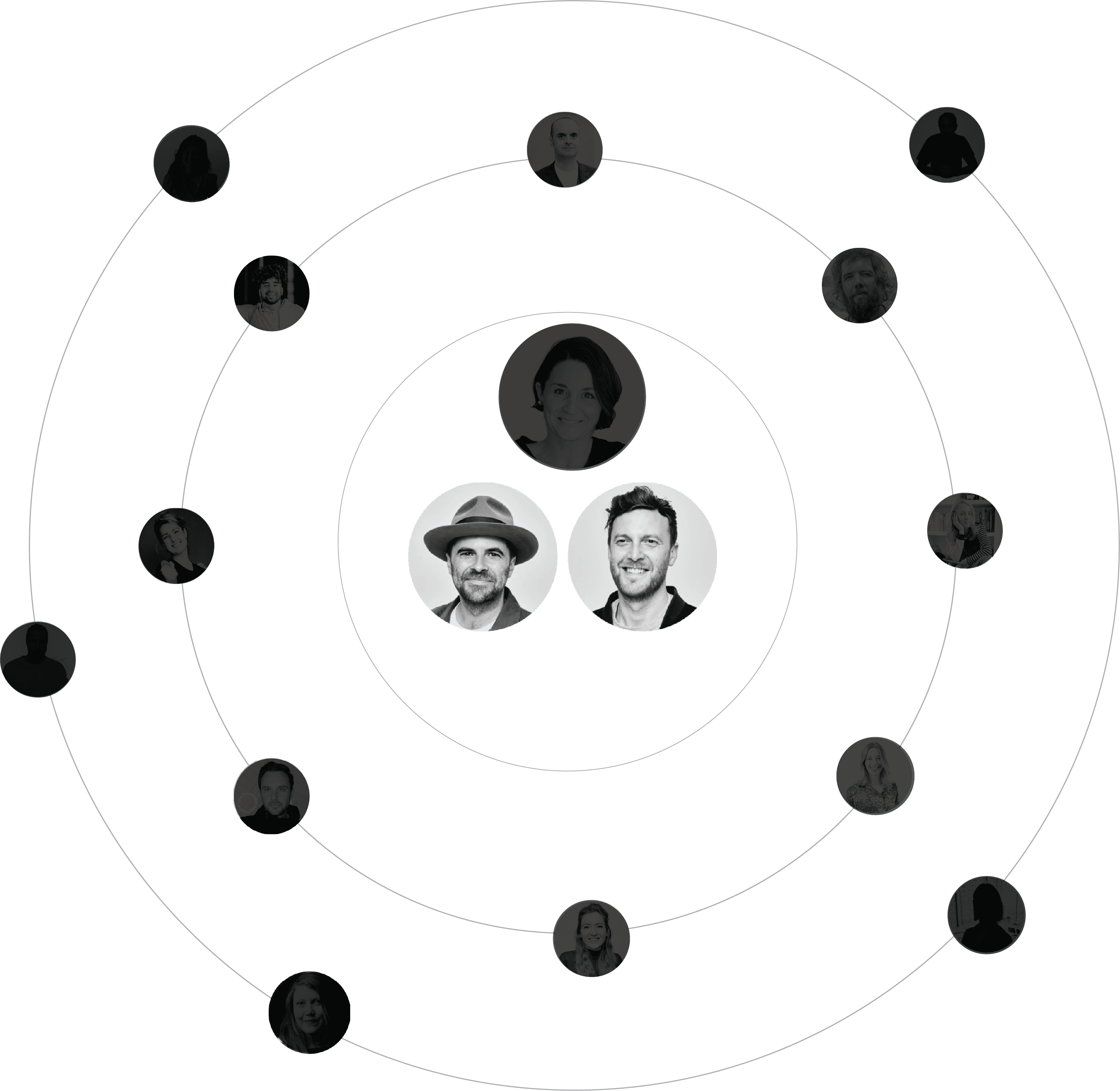 Two-person core team owners of the project. Embedded Accountable. Make the decisions and keep things moving. No committee. No dilution.